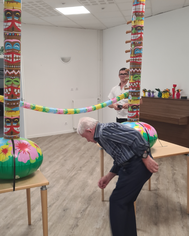 Sous le thĂšme d’HawaĂŻ, les rĂ©sident·e·s ont pu faire du limbo, danser et s’amuser tous ensemble accompagnĂ©s de la joie de vivre du personnel.