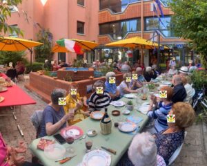 Le soir venu, le menu a transportĂ© les convives directement en Italie : apĂ©ritif autour de spĂ©cialitĂ©s mĂ©diterranĂ©ennes, pizzas variĂ©es, vins italiens typiques (Lambrusco et Chianti) et un dessert rafraĂźchissant. đ€©