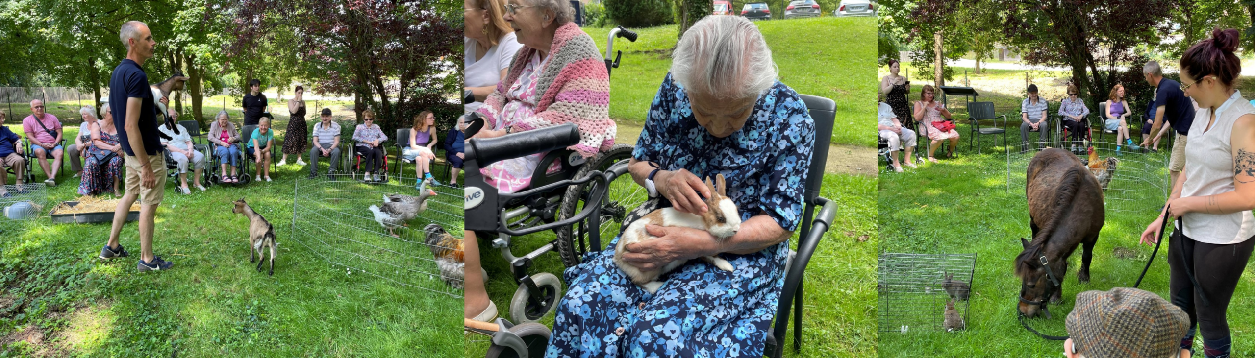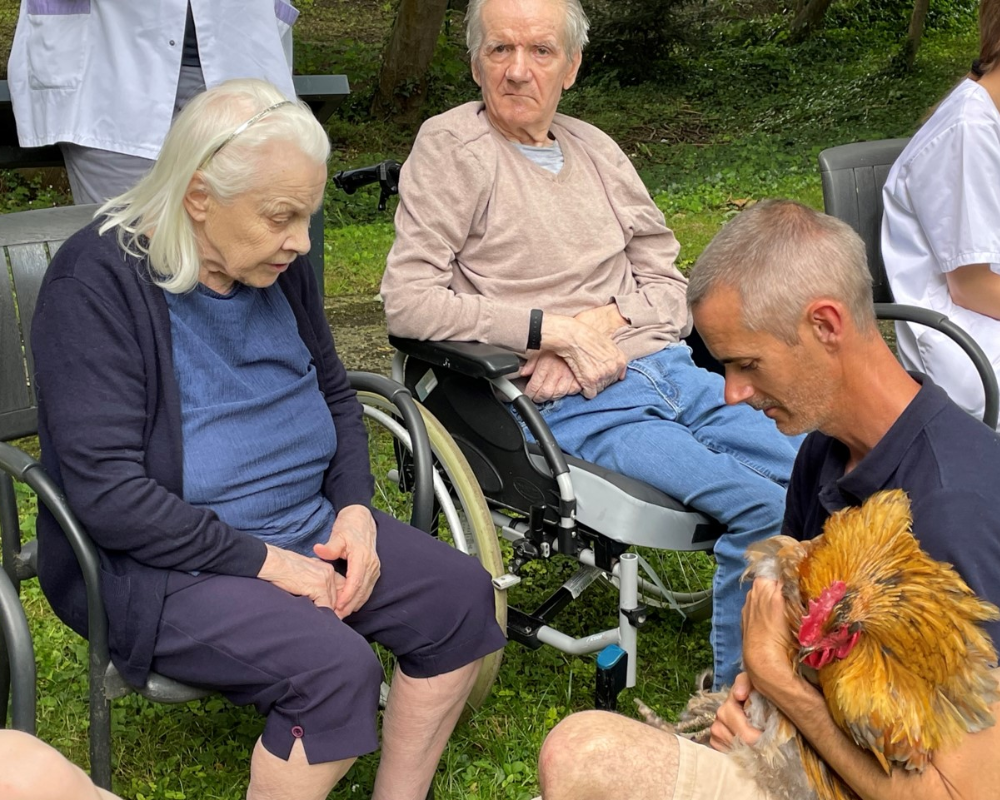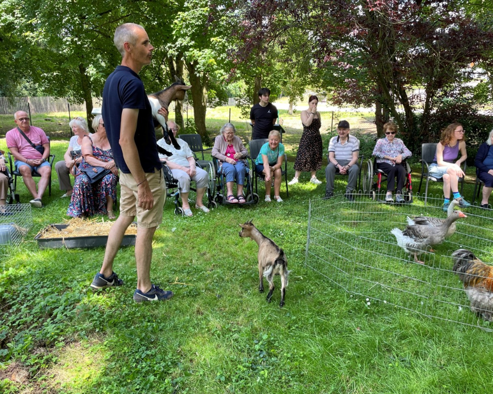 Un adorable poney, un majestueux coq, des chĂšvres espiĂšgles, des oies Ă©lĂ©gantes, des canards curieux, des poules colorĂ©es et des lapins cĂąlins ont apportĂ© une animation bienveillante et apaisante au cĆur de la rĂ©sidence.âš