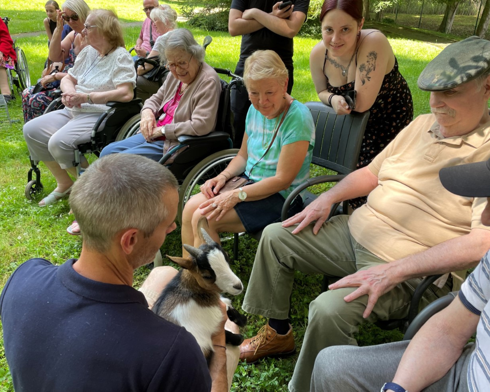 En plus de favoriser les interactions sociales entre les rĂ©sident·e·s, la visite de la ferme itinĂ©rante contribue Ă rĂ©duire le stress et lâanxiĂ©tĂ©, apportant une sensation de bien-ĂȘtre et de rĂ©confort. â€ïž