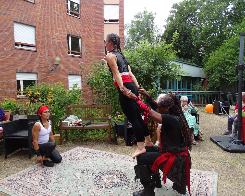 Et parce que l’animation, c’est aussi une affaire d’équipe, les collaborateur·rice·s n’ont pas été épargnés : Marie-Anne, animatrice de la résidence, et Paul, nouvel arrivant dans l’équipe, se sont prêtés au jeu d’une initiation acrobatique. 👏