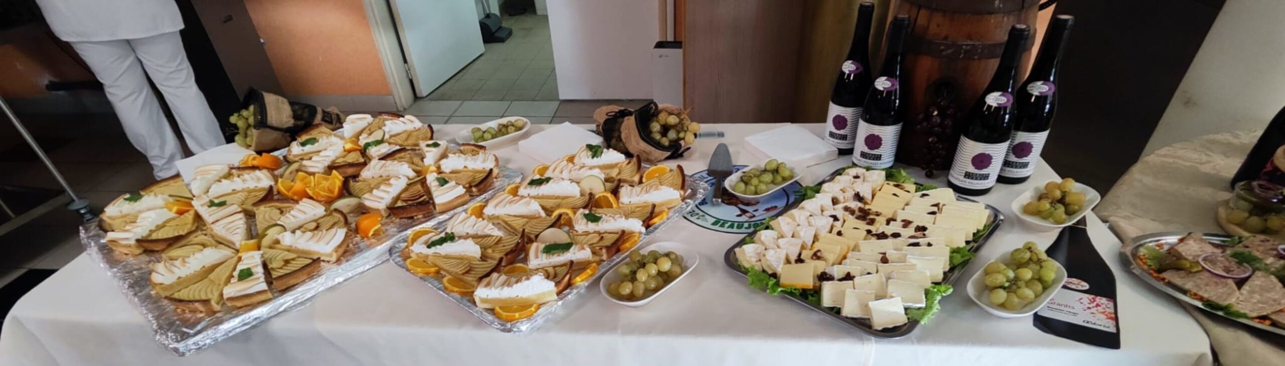 Les résidents se sont retrouvés pour savourer le Beaujolais Nouveau, accompagné d’un buffet campagnard, d’un plat d’andouilette grillée à la sauce moutarde avec frites, du fromage et en dessert : tarte aux pommes et tarte citron meringué. 🤩