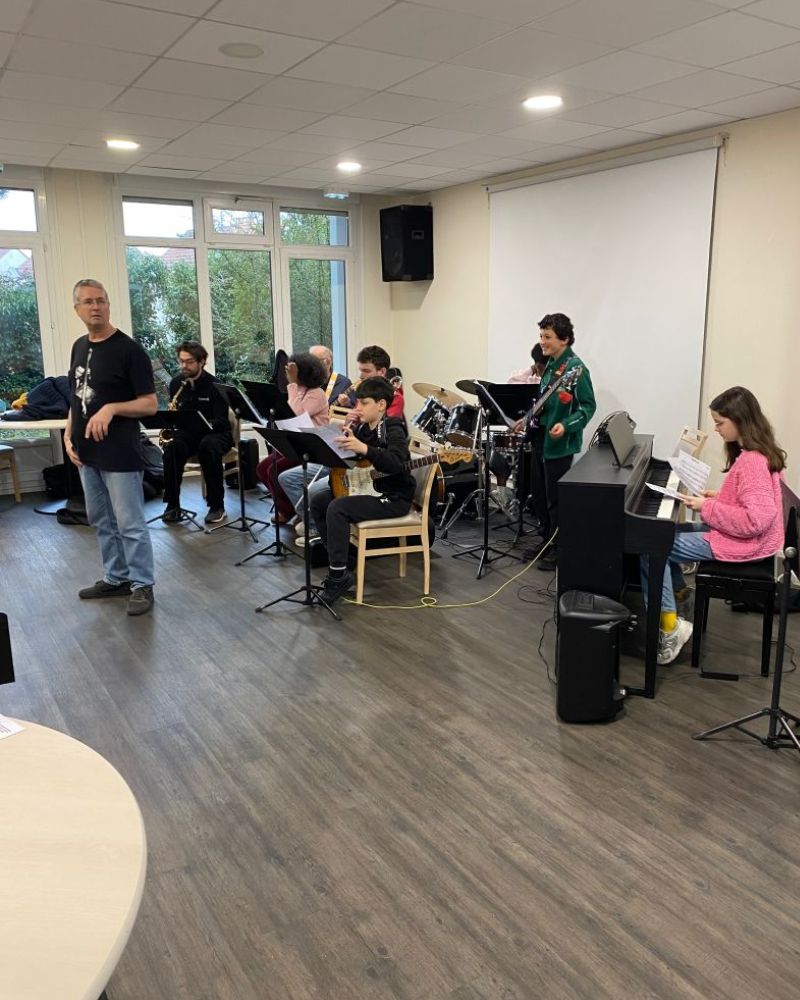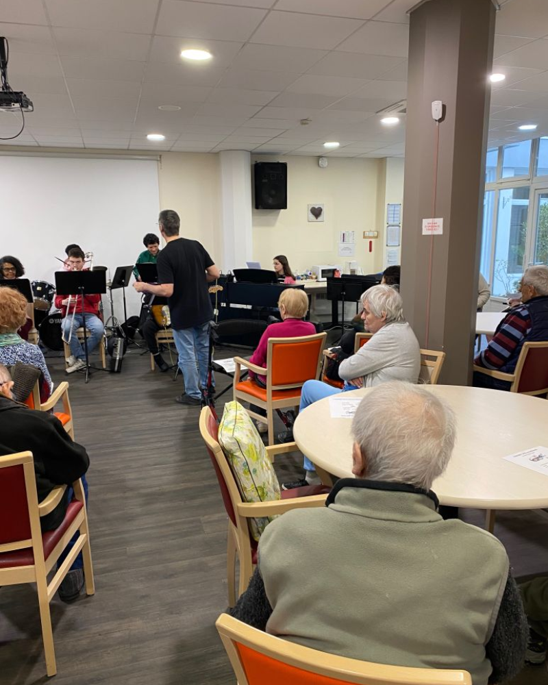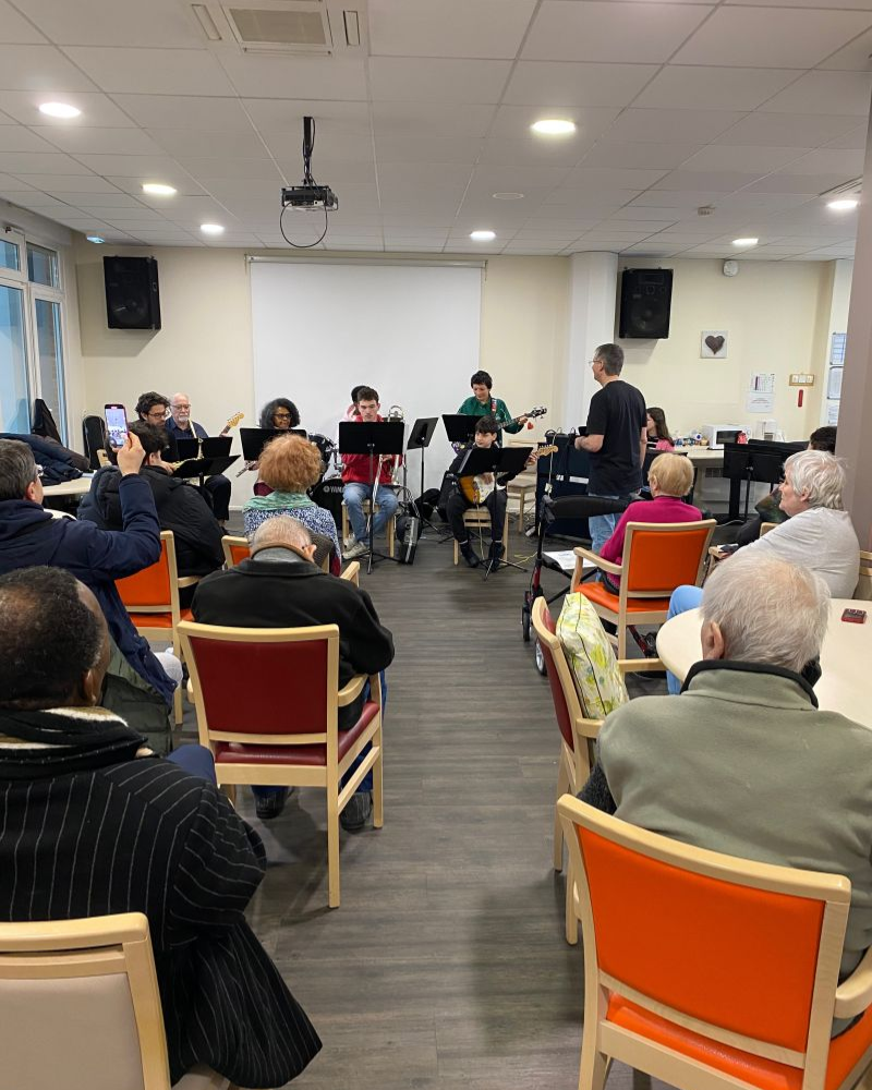 Les Ă©lĂšves ont transformĂ© le salon en vĂ©ritable scĂšne musicale. Les rĂ©sident·e·s ont pu profiter dâun moment artistique de qualitĂ©, portĂ© par lâĂ©nergie communicative des jeunes musicien·ne·s.đ¶