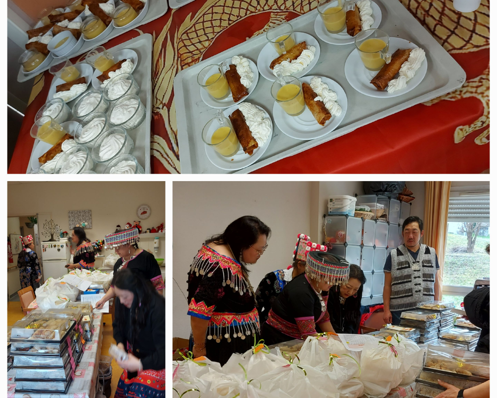 LâAssociation RhĂŽne-Alpes HMONG est intervenue bĂ©nĂ©volement, et a Ă©galement proposĂ© une vente Ă emporter de spĂ©cialitĂ©s asiatiques : nems, samoussas, riz cantonais, gĂąteaux au pandan, au sĂ©sameâŠÂ Un vrai rĂ©gal qui a permis Ă chacun de prolonger lâexpĂ©rience culinaire chez soi.đ