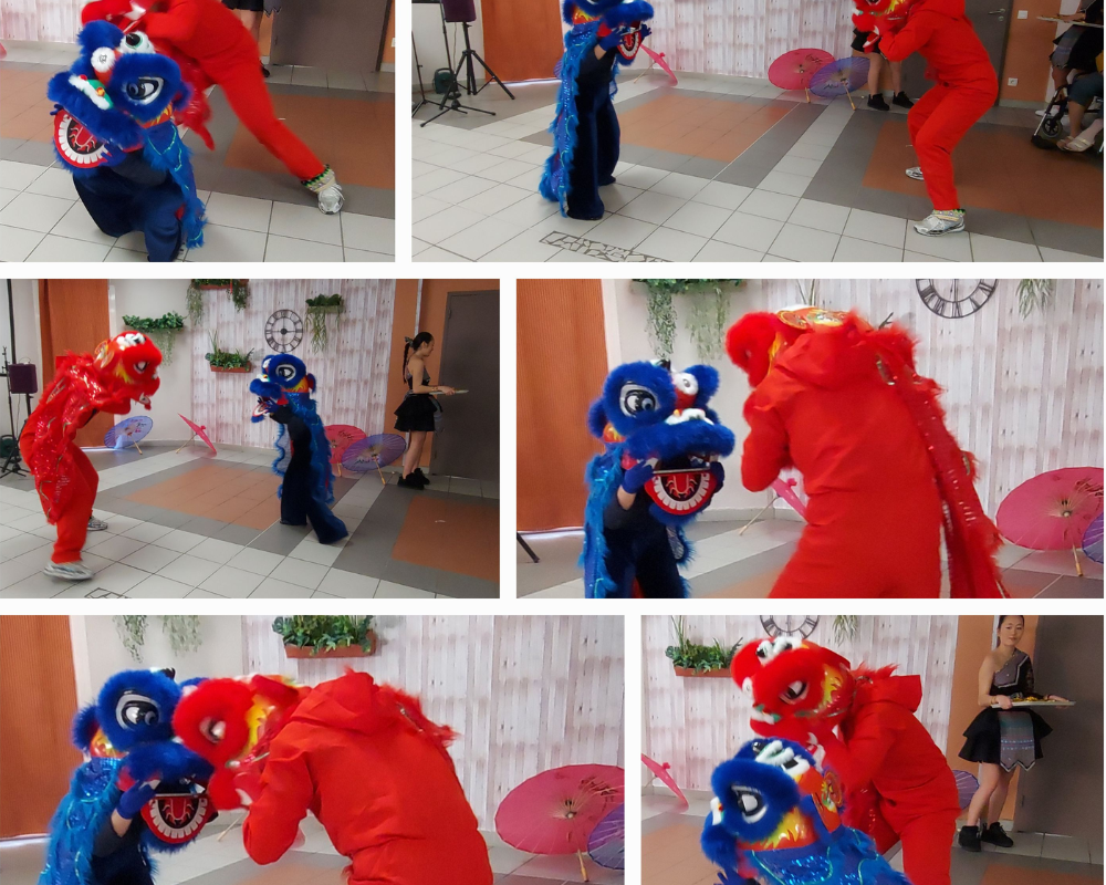 - Impressionnante danse des lions, avec deux lions, symbolisant le dĂ©part de lâancienne annĂ©e et lâarrivĂ©e de la nouvelle annĂ©e, qui ont Ă©merveillĂ© petits et grands