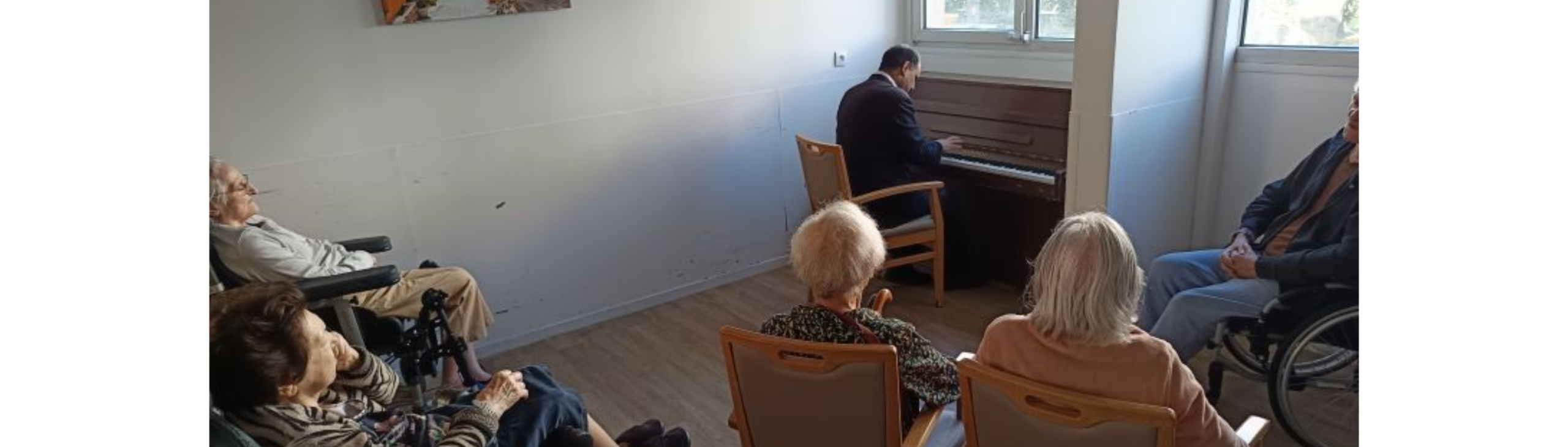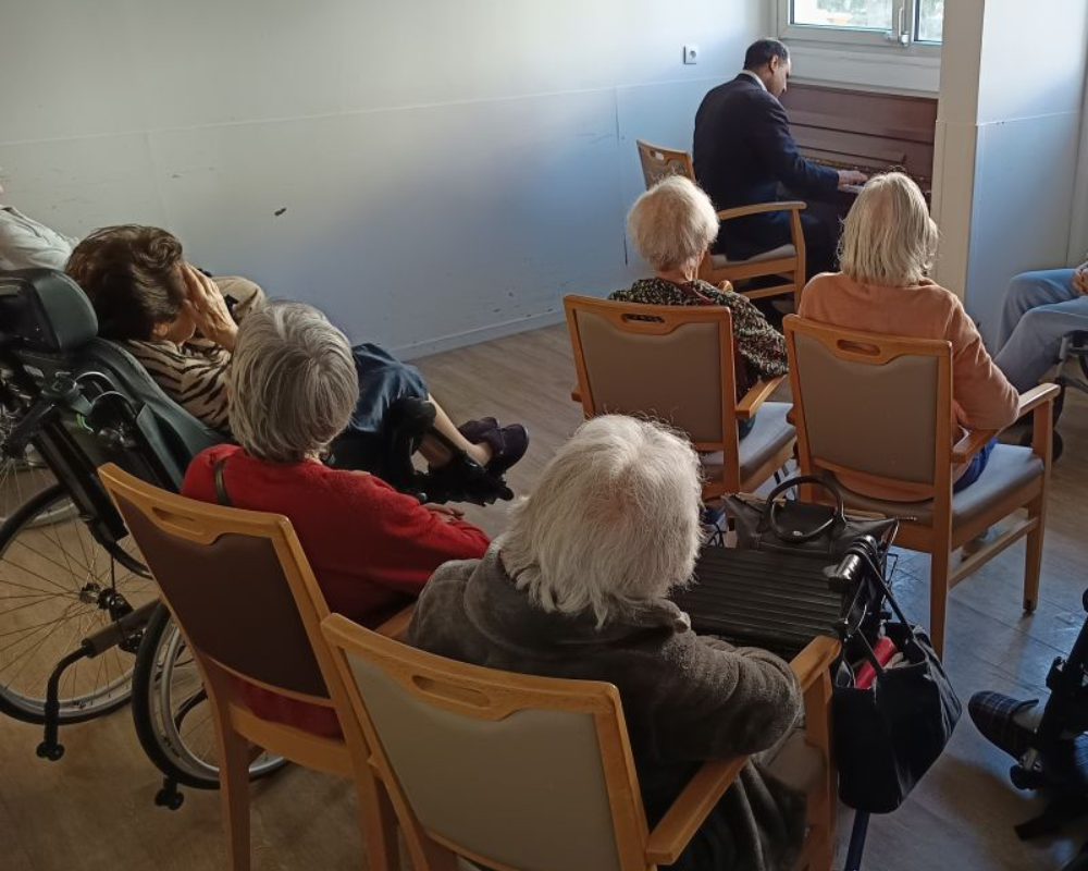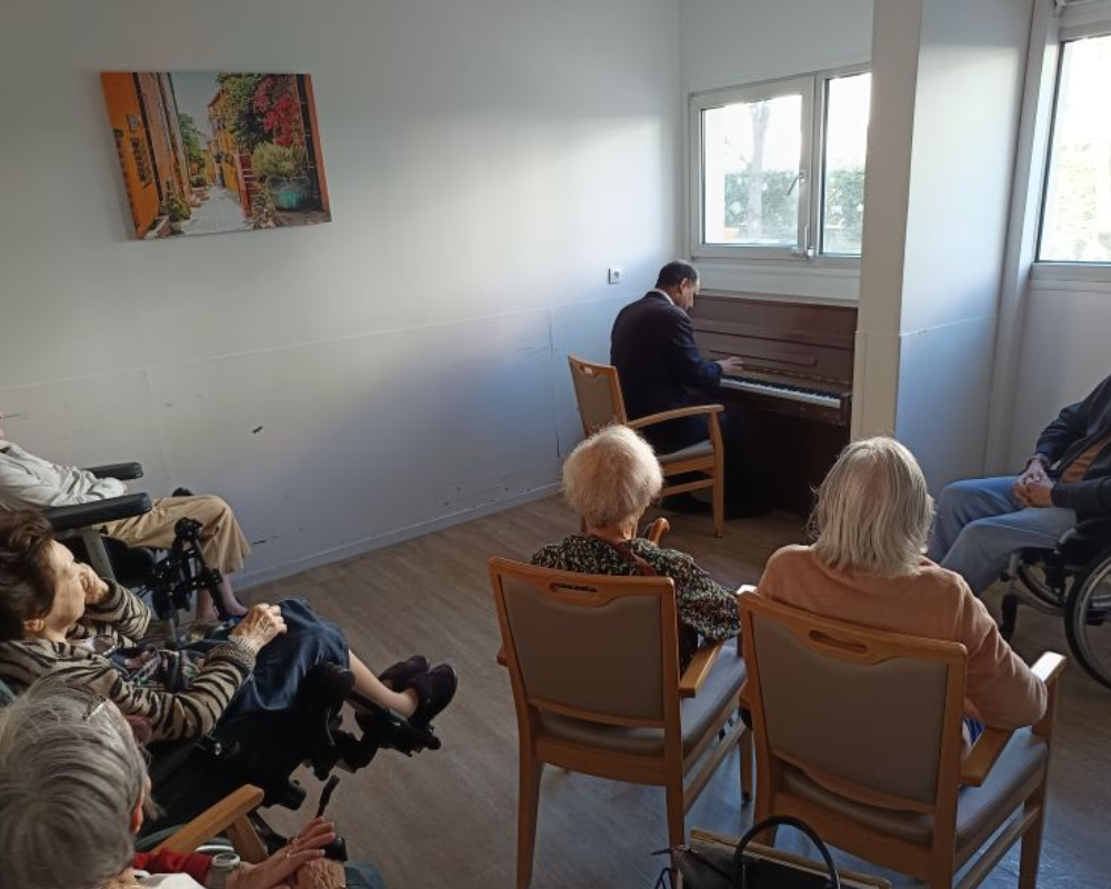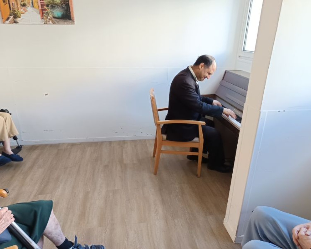 Ă lâoccasion des anniversaires mensuels, un pianiste est venu offrir aux rĂ©sident·e·s une parenthĂšse musicale tout en douceur. đč