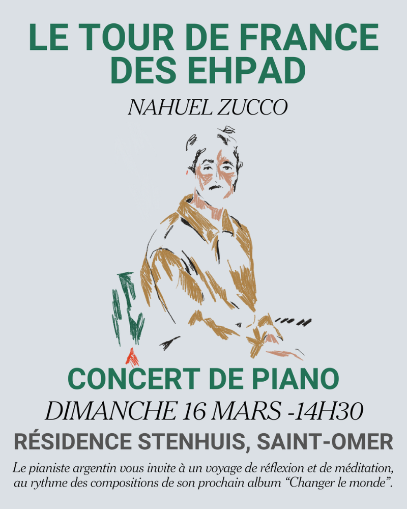 La rĂ©sidence Stenhuis a accueilli Nahuel Zucco, pianiste argentin installĂ© Ă  Paris, dans le cadre de sa tournĂ©e des Ehpad Ă  travers la France. đŸŽč