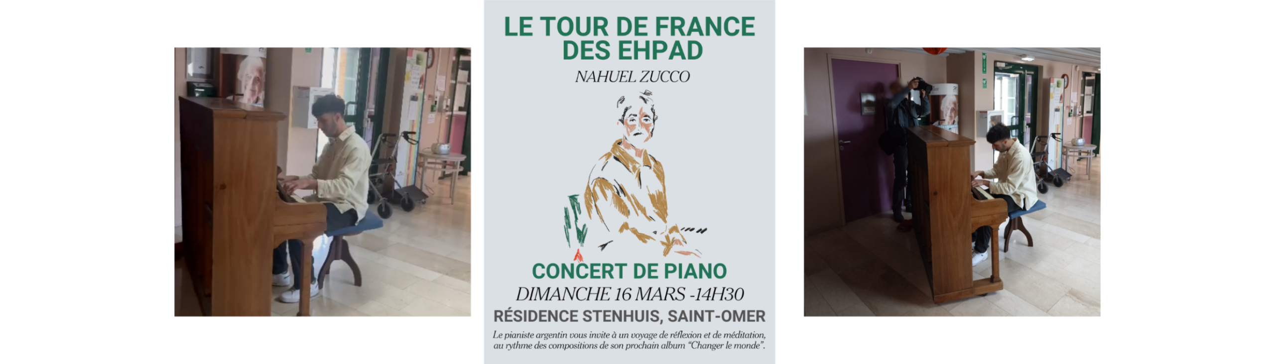 La rĂ©sidence Stenhuis a accueilli Nahuel Zucco, pianiste argentin installĂ© Ă  Paris, dans le cadre de sa tournĂ©e des Ehpad Ă  travers la France. đŸŽč