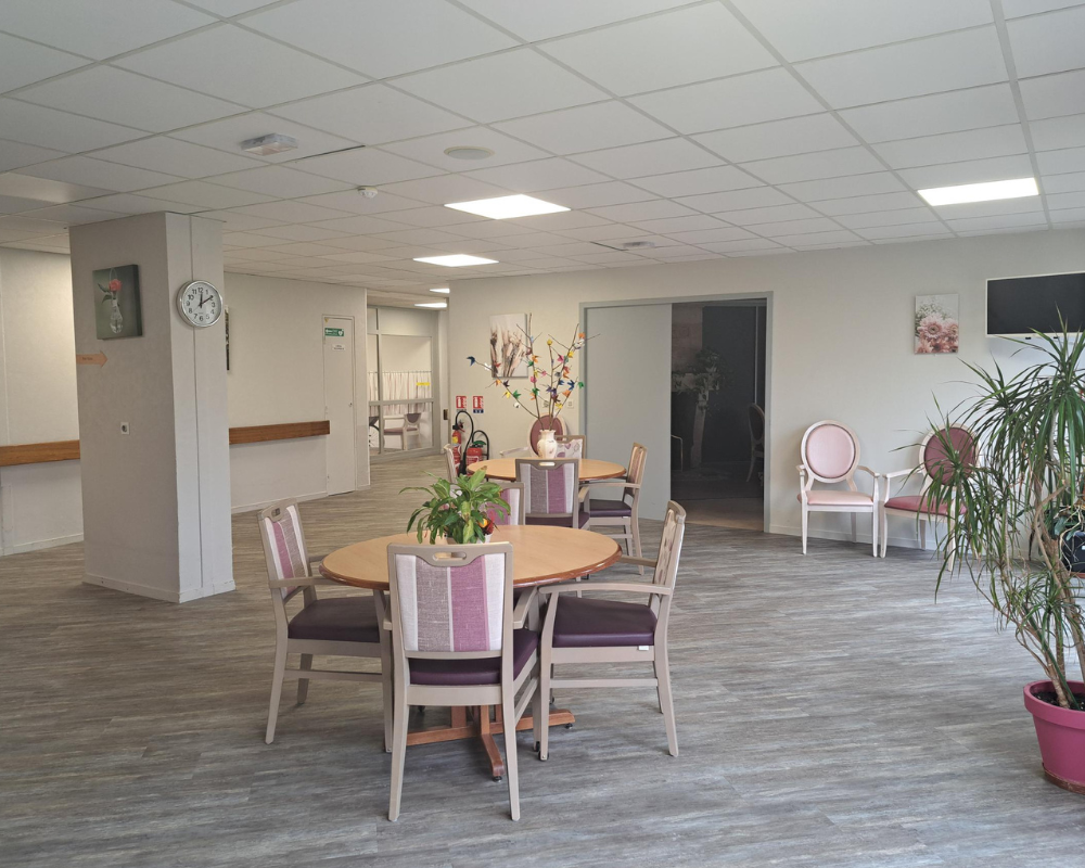 La résidence comprend également des espaces communs favorisant les échanges conviviaux entre les résident·e·s et leur famille.