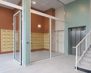 Elle propose : 9 T1 bis de 33 m², 37 T2 de 46m² et 3 T3 de 63m², au sein d’un bâtiment sécurisé. - Une grande terrasse partagée par les résident.e.s , les familles et les tout-petits, avec des espaces distincts pour garantir le confort de chacun.e.