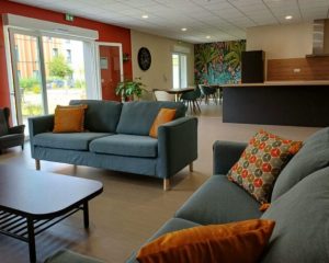 Pour la vie collective, plusieurs espaces sont à disposition des résidents : Un espace de convivialité de plus de 70m², équipé d’une cuisine ouverte sur une salle à manger et un salon. Des espaces verts arborés et une terrasse aménagée. Et un jardin partagé avec potager sur bacs.