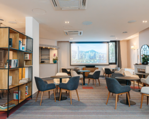 La résidence propose également une offre de services avec des espaces dédiés au confort et aux loisirs : salle de sport, bibliothèque, piano bar, salon de coiffure, patio et buanderie, parking.