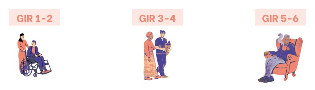 les résident.e.s évalué.e.s en GIR 1-2 ont besoin d’une aide importante d’un tiers dans les actes de la vie quotidienne.