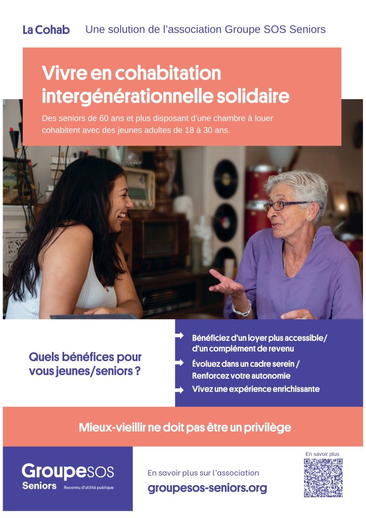 En réponse à ces défis sociétaux, La Cohab de Groupe SOS Seniors organise la mise en relation entre un.e senior âgé.e de plus de 60 ans et un.e jeune étudiant.e, ou un.e travailleur.euse de moins de 30 ans.